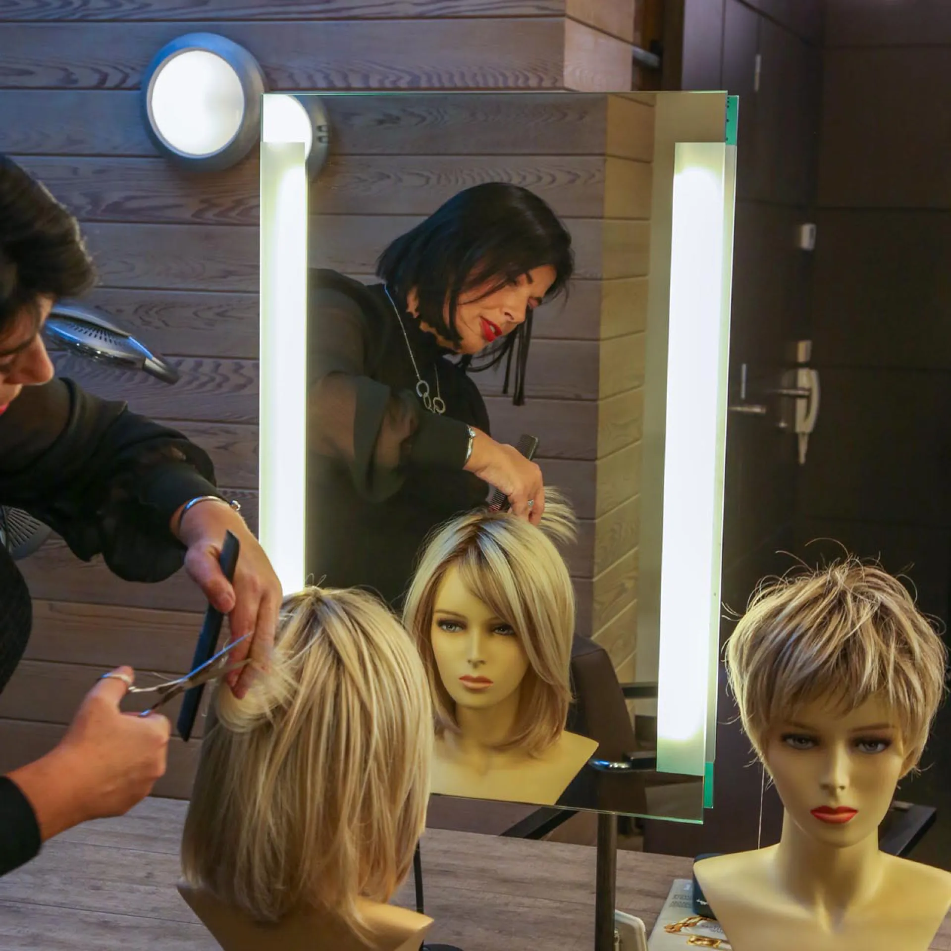 In een discrete ruimte adviseren we vrouwen én mannen bij de keuze van kwalitatieve pruiken (met synthetisch of echt haar). Elke pruik wordt op maat gemaakt en passen we achteraf aan tot ze helemaal goed zit. Bijknippen kan natuurlijk voor een comfortabele en trendy look.